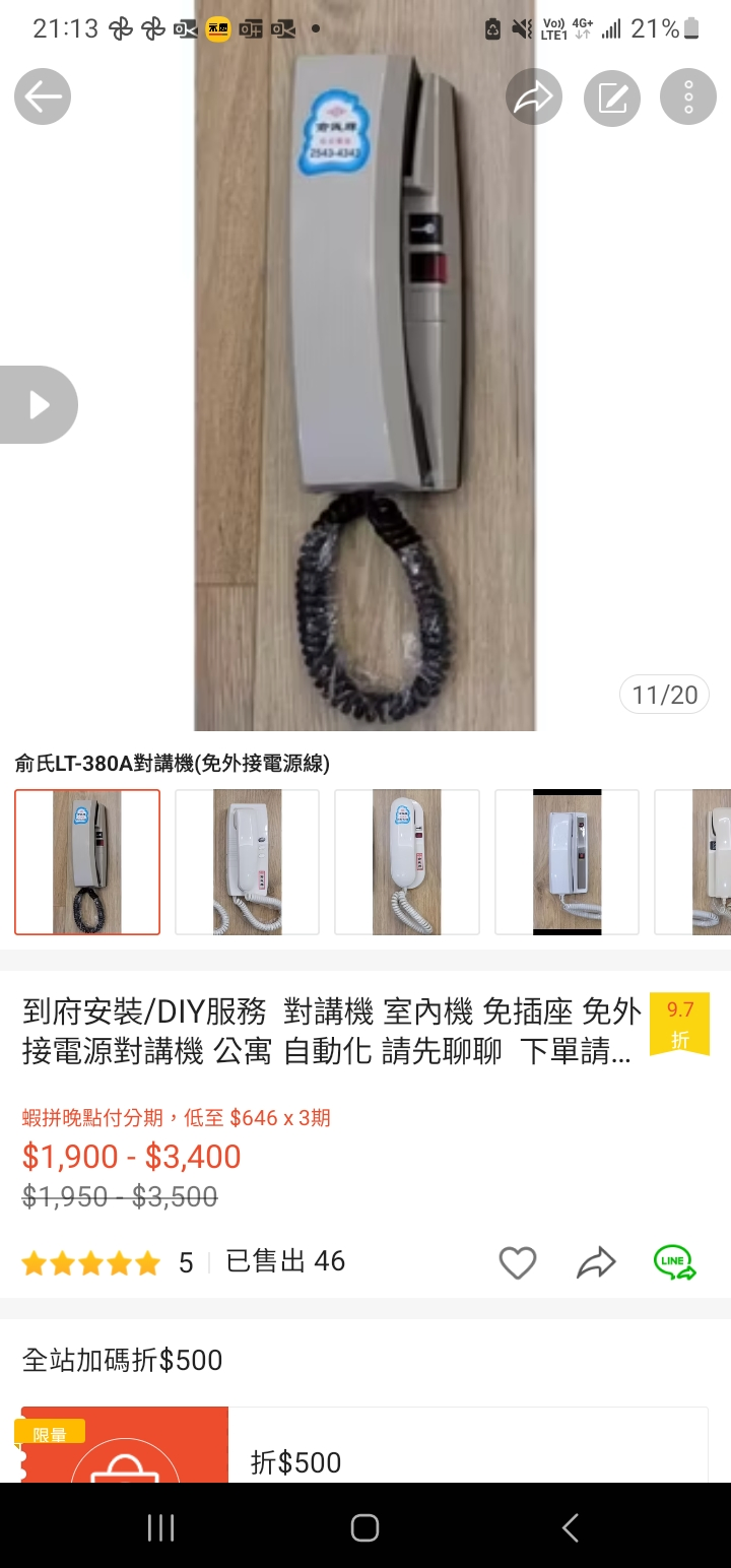 到府安裝服務/DIY指導安裝 免插座 免電池 免外接電源 對講機